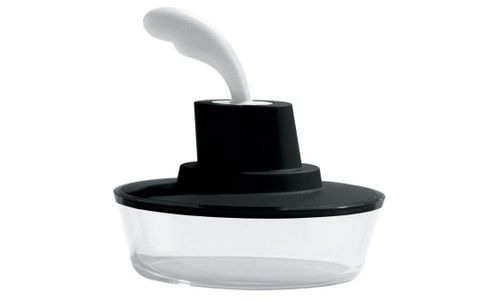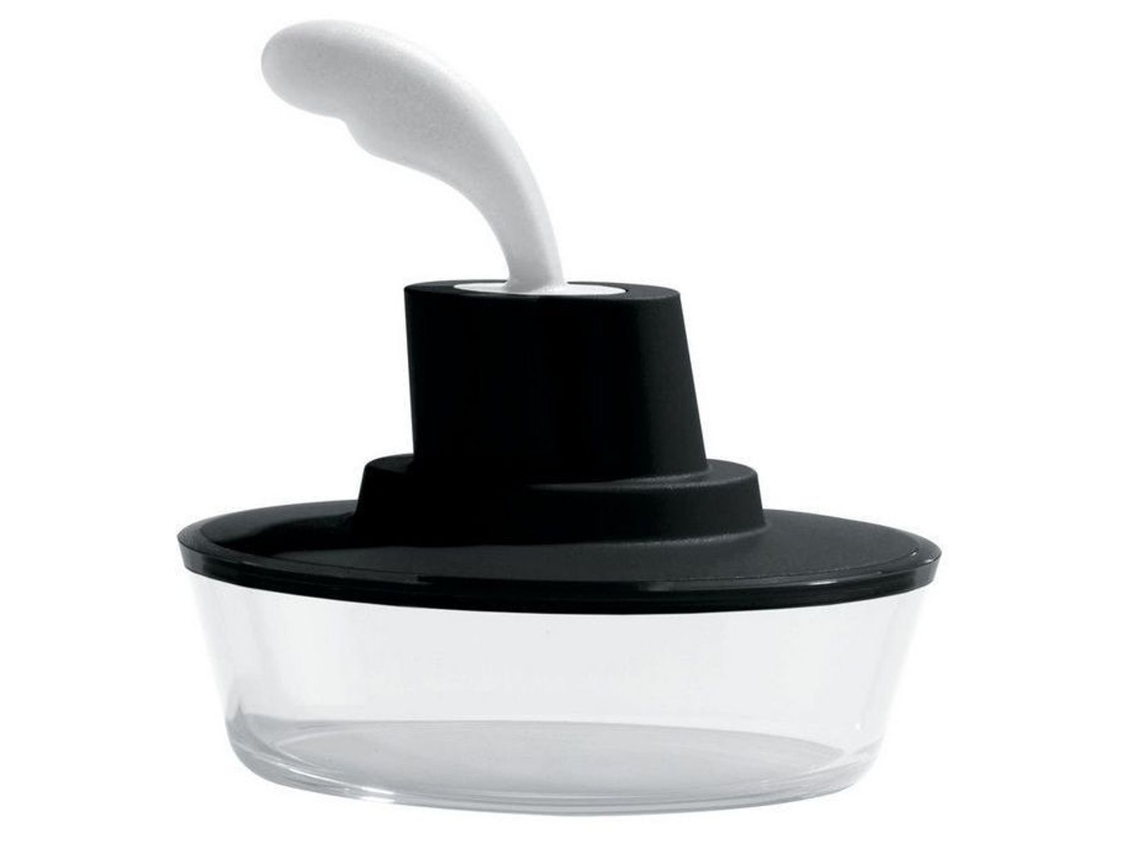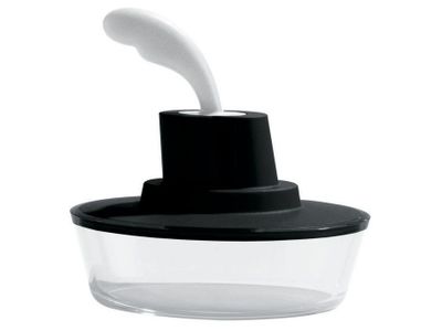 Botervloot gemaakt van kunststof, met botermes in roestvrij staal, zwart Designer: Stefano Giovannoni, Paul Van Iersel Harry