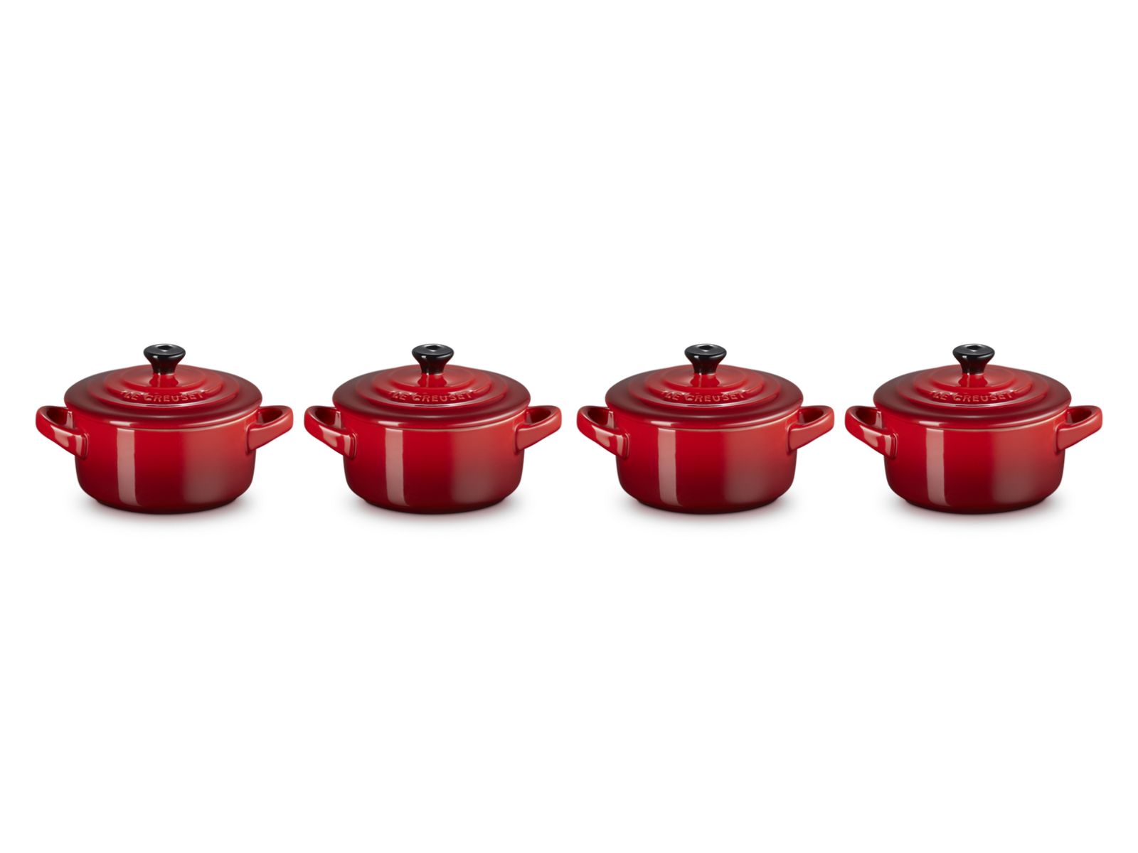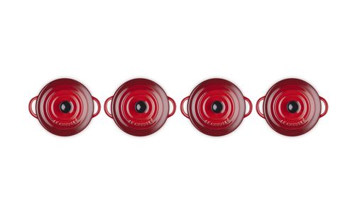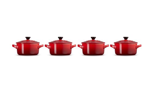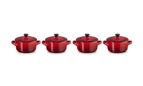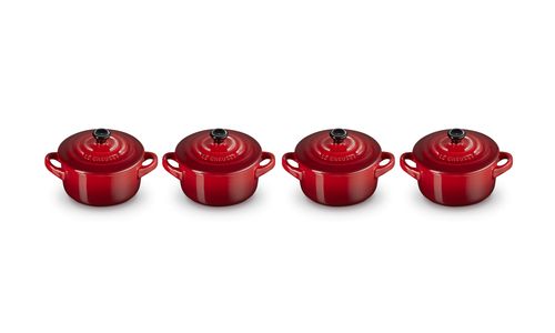 Deze set van vier klassieke kleine stoofpannen zal ongetwijfeld een glimlach op uw gezicht toveren. Deze schattige pannen zijn gemaakt van premium aardewerk van Le Creuset en zijn geschikt voor de vaatwasser, oven, magnetron en vriezer. Gebruik ze voor het serveren van snacks, hapjes, desserts en voorgerechten.