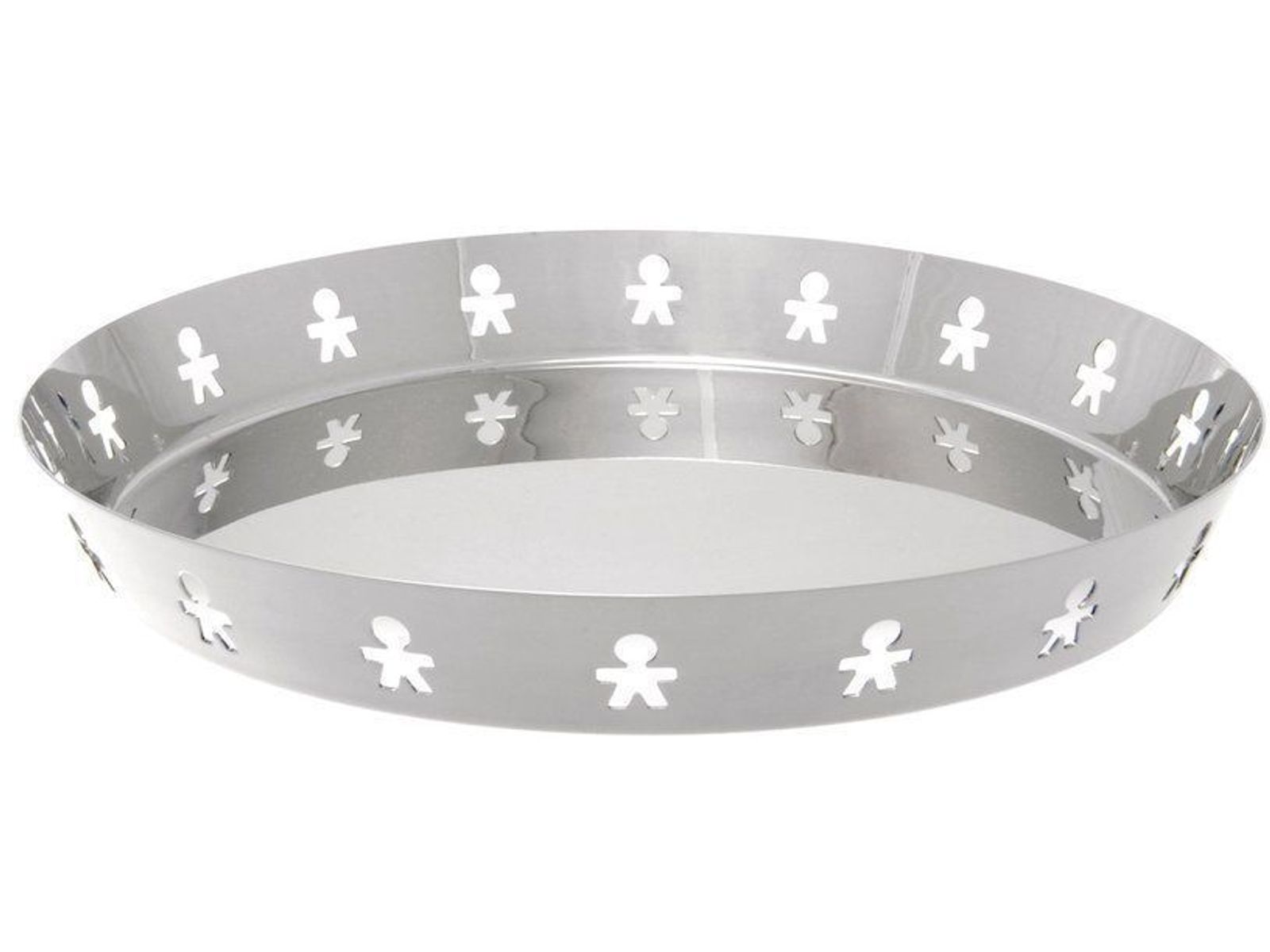 Rond dienblad met opengewerkte rand in roestvrij staal 18/10.