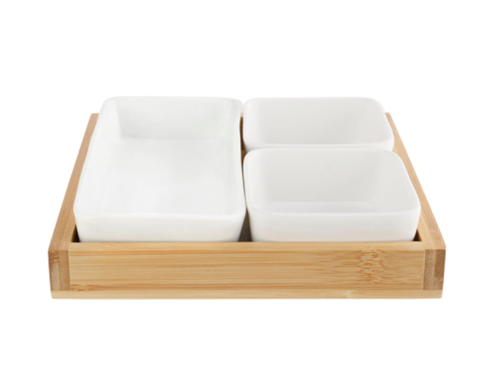Acacia Aperoplankje Met 3 Cups Keramiek 19,4x19,4xh2,5cm Bamboe