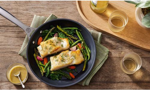 De Essential Non-Stick Ceramic koekenpan is een vertrouwde kookpartner voor alles, van aanbraden tot bruinen en meer. Met een zware aluminium kern en geavanceerde keramische coating, die is gemaakt zonder PFAS, verdeelt en behoudt het uitstekend warmte, geeft het gemakkelijk voedsel af - met weinig tot geen toegevoegde olie of vet - en veegt het snel schoon.