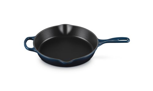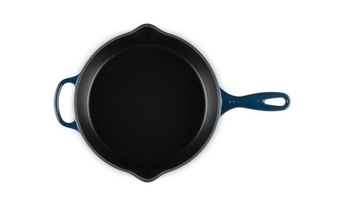 Deze pan is gemaakt van ons legendarische gietijzer, dus hij kan in de oven én op het fornuis worden gebruikt. Het is een echt basisproduct in de keuken en heeft een ergonomisch handvat waardoor hij gemakkelijk te verplaatsen is. En hij is voorzien van twee schenktuitjes, om zonder knoeien te kunnen serveren. Klaar om te serveren? Zet hem dan zo op tafel. U heeft geen extra schaal nodig.
