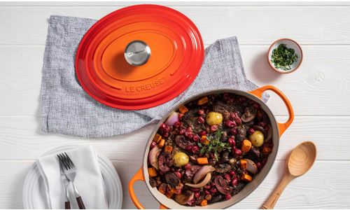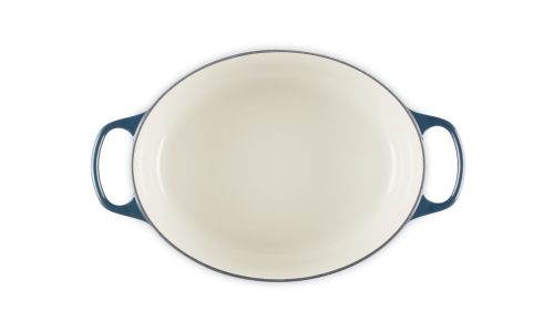 Dit ovale exemplaar is net zo veelzijdig als onze klassieke, ronde Stoofpan. De pan is groot genoeg om een hele lamsbout te braden en smal genoeg om ruimte over te laten in de oven voor extra bereidingen. Wat u ook serveert, dit belangrijkste hulpmiddel van de kok helpt u bij het creëren van verbluffende en smaakvolle gerechten.