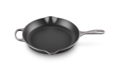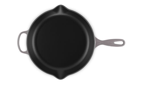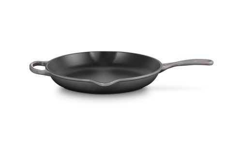 Zowel chef-koks als thuiskoks zweren bij onze karakteristieke skillet. Zijn matzwart geëmailleerde binnenkant brengt karamelliseren naar heerlijke ongekende hoogten. Deze keukenheld kan worden gebruikt op de kookplaat, onder de grill of in de oven, waardoor het een veelzijdig product is om mee te braden en bruin en krokant te bakken.